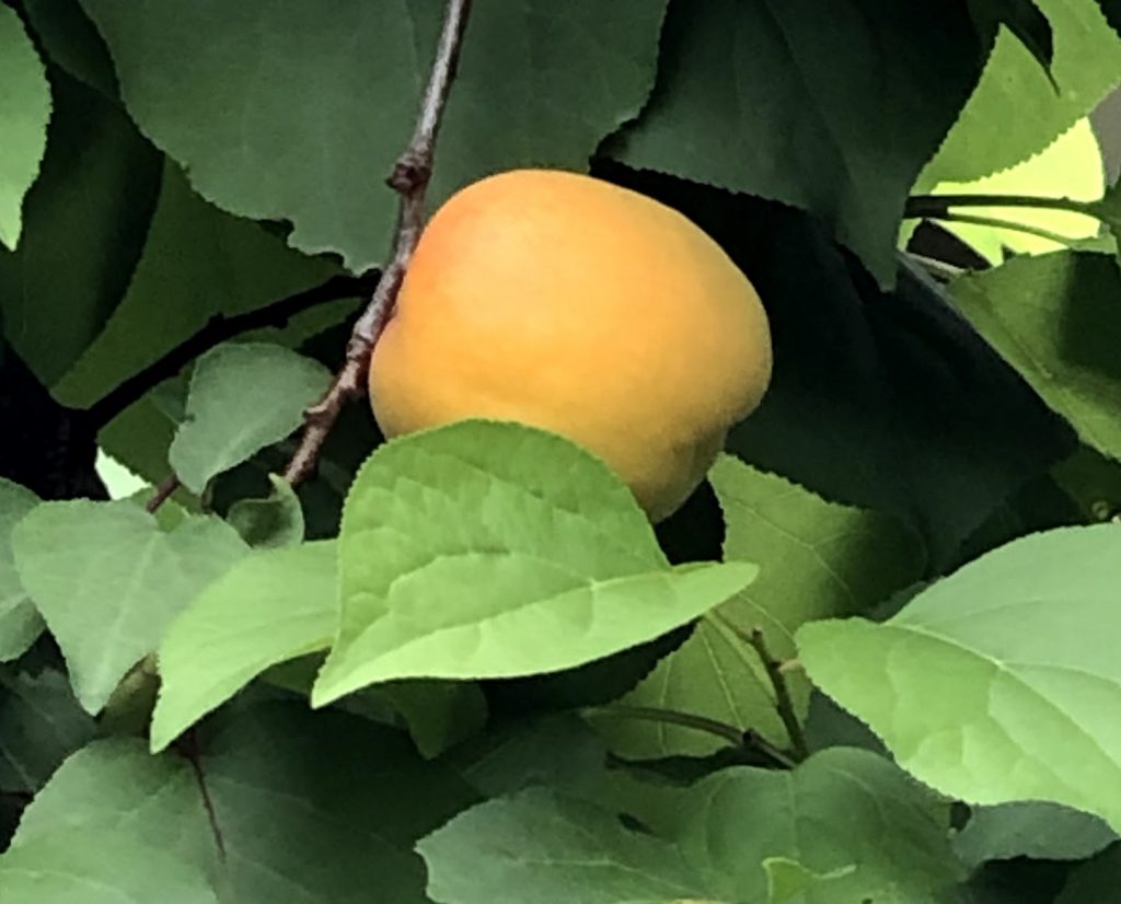 アンズの果実の大きさは品種にもよりますが、「ウメ」程の物から「スモモ」くらいで、果皮の表面は産毛は無く「ネクタリン」のようで、果皮の色は黄色から橙で日光に当たっていたところが赤みを帯びています。