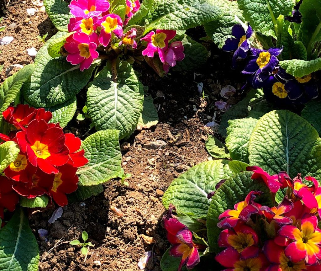 プリムラは長い期間花を楽しめることから冬の花壇を華やかに彩り、寄せ植えやハンギングバスケットによく用いられます。