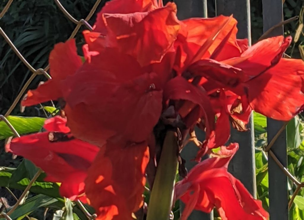 フランスカンナ系の「アメリカンレッドクロス」は赤とオレンジ色が混じった朱色の花を咲かせる品種で、草丈は100cm〜150cmと大きめです。