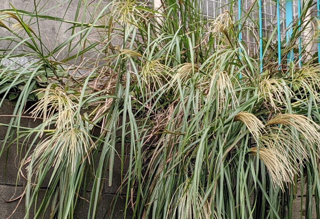 「タカノハススキ」は葉に薄黄色の斑が横縞のように入るススキで、「Zebra grass(ゼブラグラス)」という英名もあります。草丈が2mくらいまで大きくなります。
