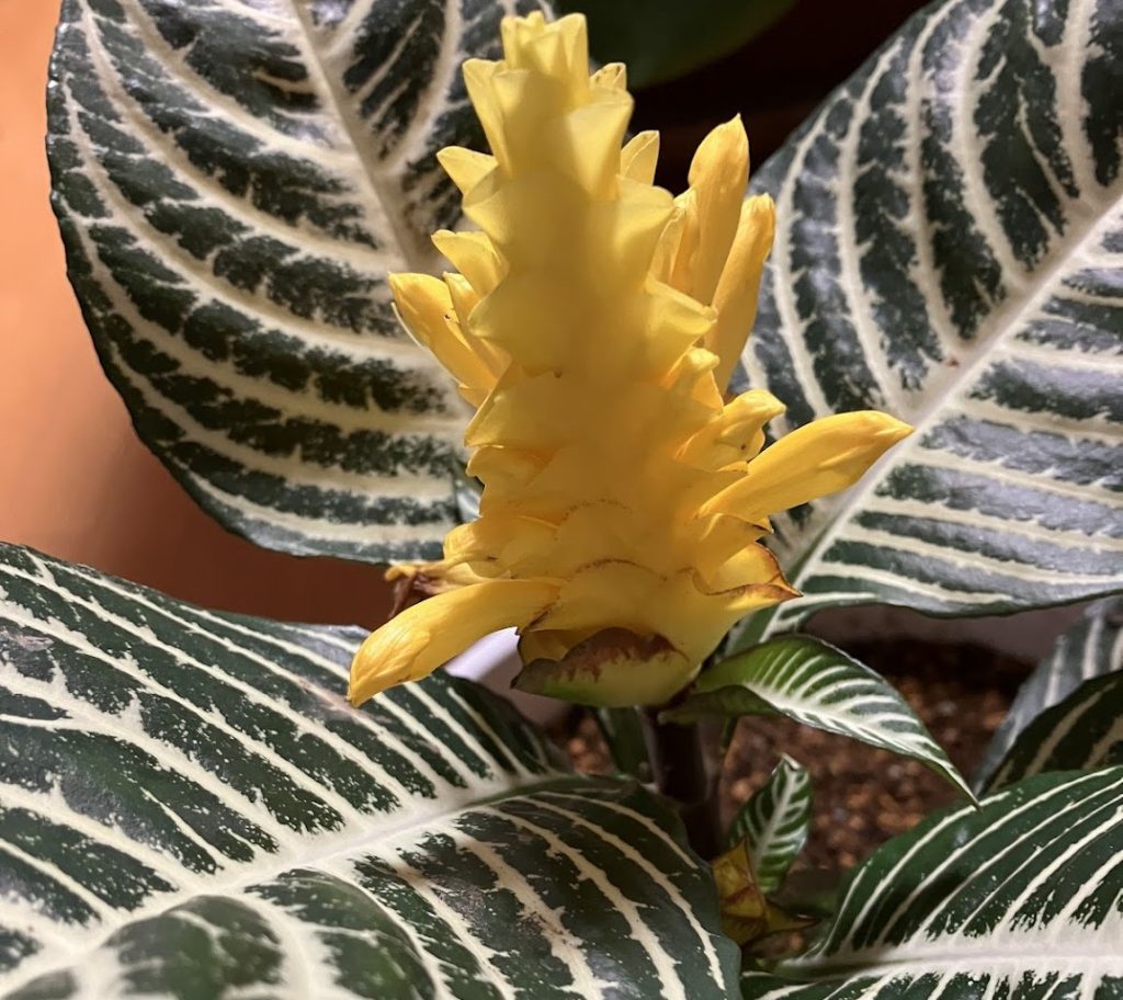 アフェランドラの花は横から長く伸びている部分で寿命は短いですが、苞は花を包む葉なので1か月以上鑑賞することができます。