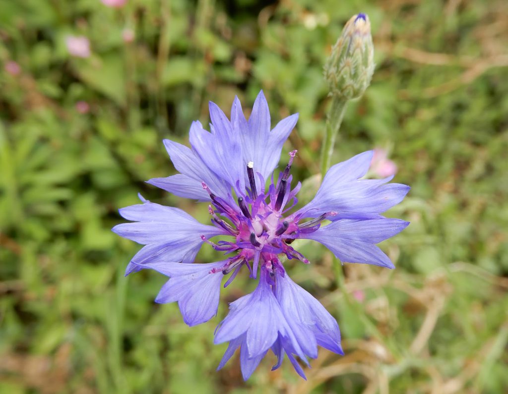 ヤグルマギクの名前は花姿が「矢車」に似ていることからヤグルマギクの和名がつけられましたが、英名ではコーンフラワーと呼ばれ「小麦畑の雑草」という意味になります。